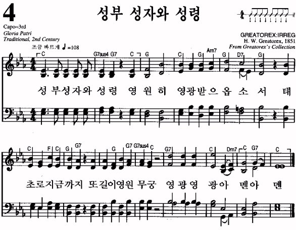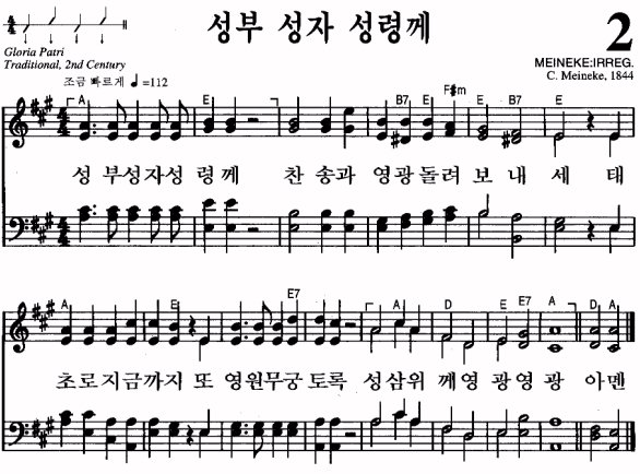 ¿µ¹®¸í : Glory be to the Father ÀÛ»ç : ¶óƾ¾î Âù¼Û 'Gloria Patri'(¼ººÎ²² ¿µ±¤)¿¡¼ ¿Å°Ü ¿Â °ÍÀÌ´Ù.ÀÛ°î : C. Meineke